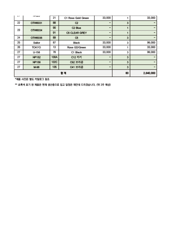 80EA x  33,000원 (부가세별도)