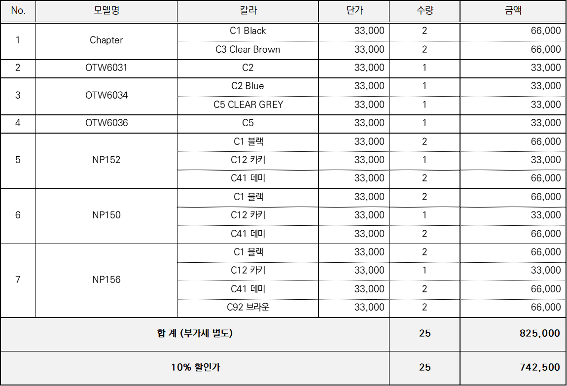 합계 : 816,750원 (742,500원 + VAT 74,250원)